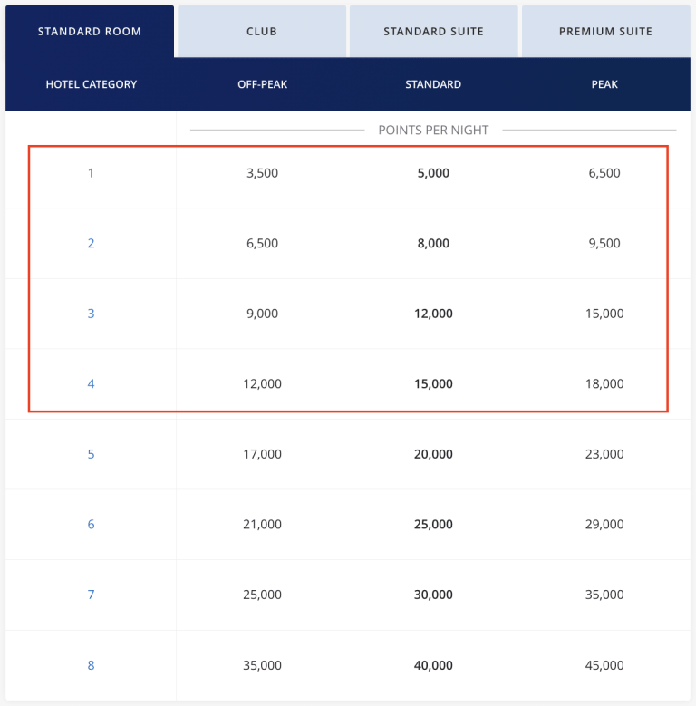 As mentioned earlier, Hyatt still has a fixed award chart and sorts their properties into 8 categories, with 1 as their lowest end properties and 8 as the highest. The Hyatt Brand Explorer reward gives you a free night at Category 1-4 hotel or resort. Note that you cannot use a Category 1-4 free night certificate at all-inclusive properties.
