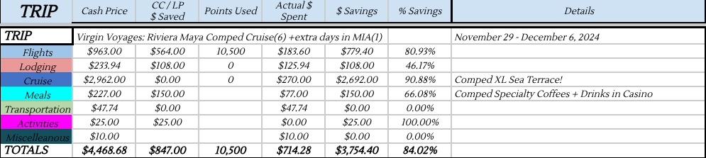 One of the reasons why I am so transparent about my trips is to show what my true costs and savings look like so you can make truly informed decisions. As there are other costs associated with these comped cruises and they can quickly add up.