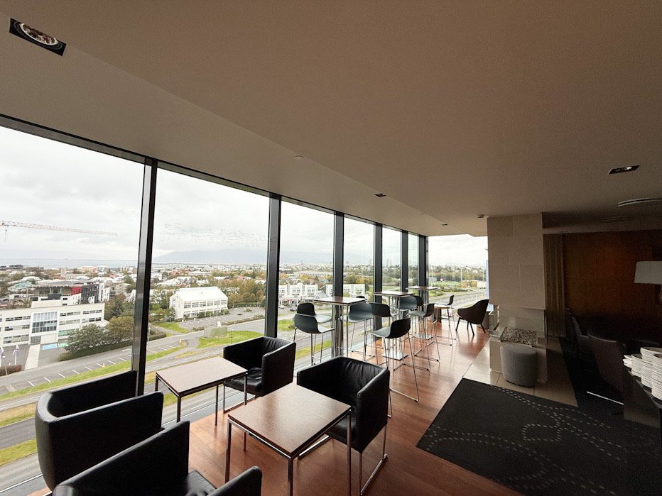 Executive Lounge Access at the Hilton Reykjavik Nordica with huge windows to enjoy the great view.