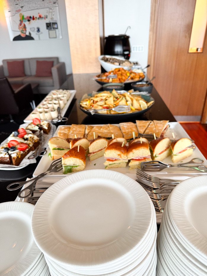 One of the best perks for access to the lounge is the daily happy hour that offers a generous spread of food – especially welcome in super pricey locales like Iceland!