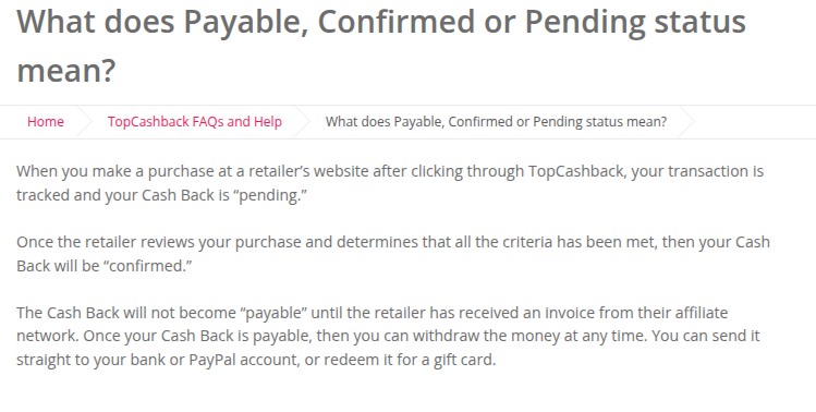 After that, it was ~30 days for the cashback to change to payable in my TopCashback account!
