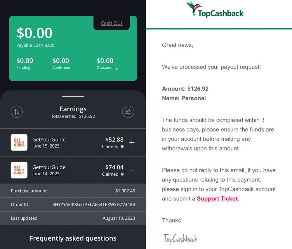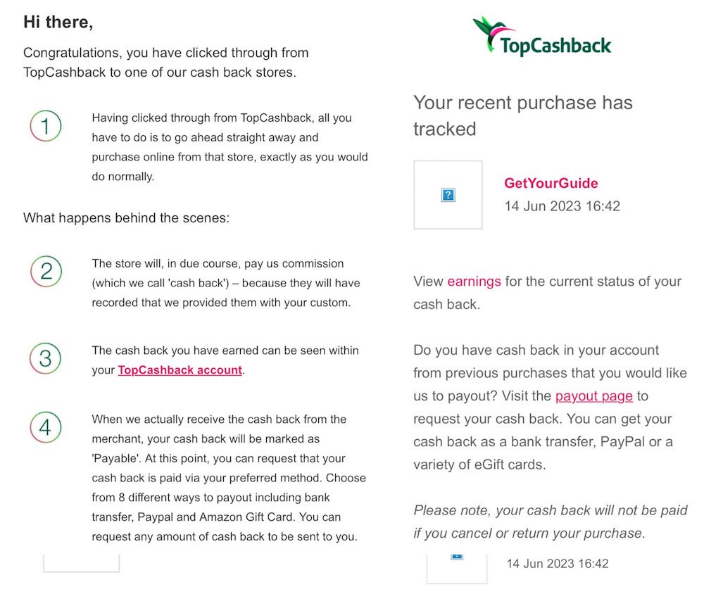 TopCashBack tends to have higher cashback than Rakuten for GetYourGuide!