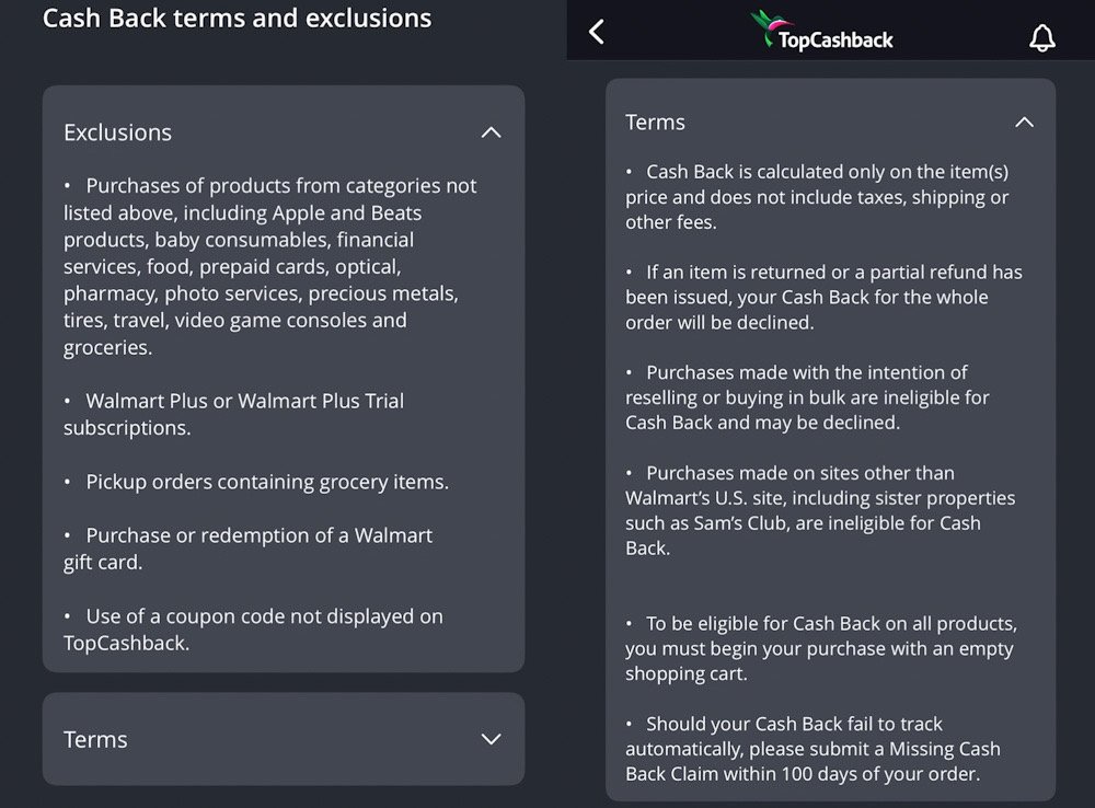 - Gift Cards: Purchase or redemption of a Walmart GC will make your shopping trip ineligible (this is standard for all shopping portals)