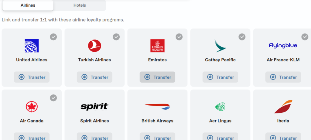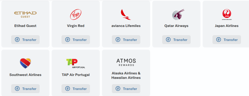 Some of the more interesting partners are Japan Airlines (whose only other partner is Capital One with a less favorable transfer ratio!), Atmos (Alaska + Hawaiian Airlines) and Emirates.