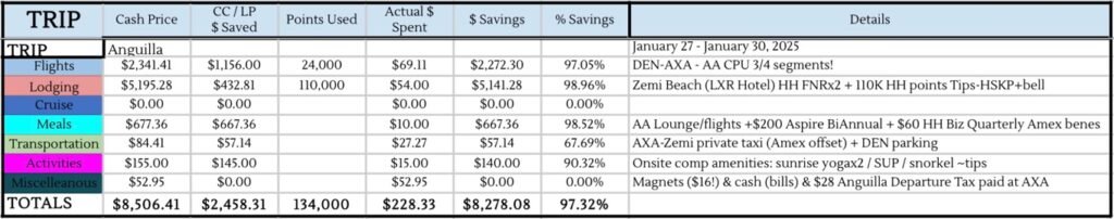 - The trip reports have information on what I spent cash/miles/points wise, how much I saved and a deep dive into the travel hacking aspects of the trip.