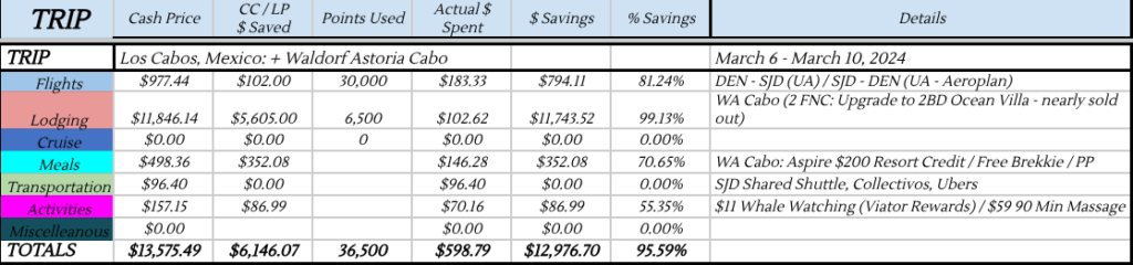 - The trip reports have information on what I spent cash/miles/points wise, how much I saved and a deep dive into the travel hacking aspects of the trip.